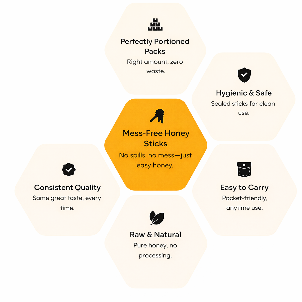 At Ezeehoney™, we bring you pure, natural honey in a smarter, mess-free format. Designed for modern lifestyles, our honey sticks make enjoying honey easy, hygienic, and perfectly portioned—anytime, anywhere.