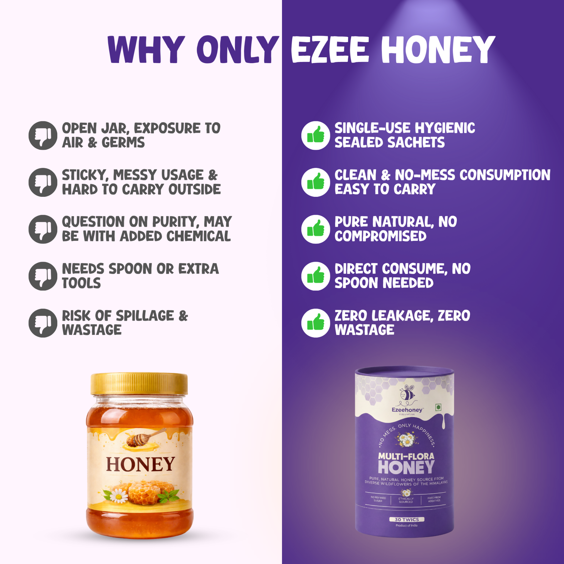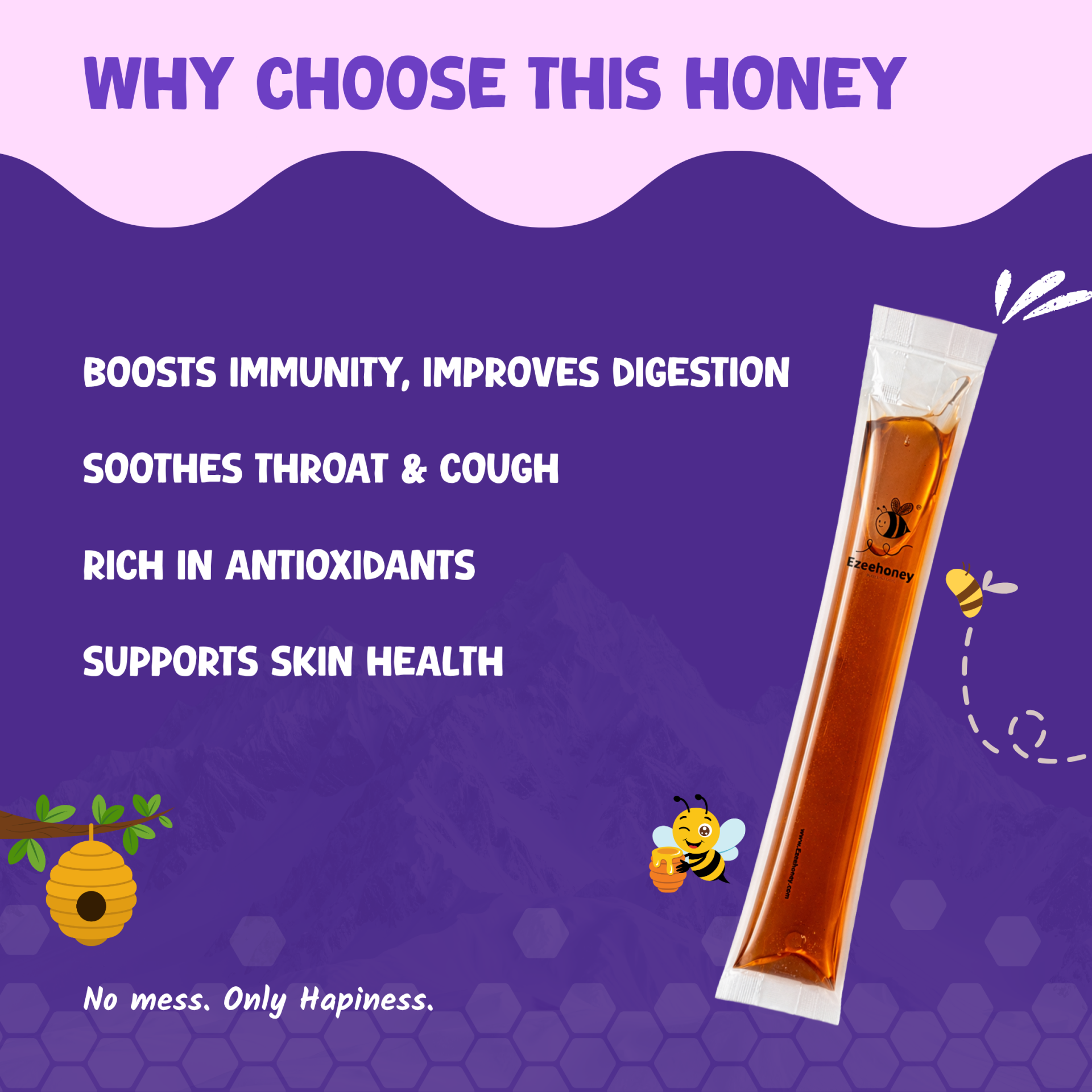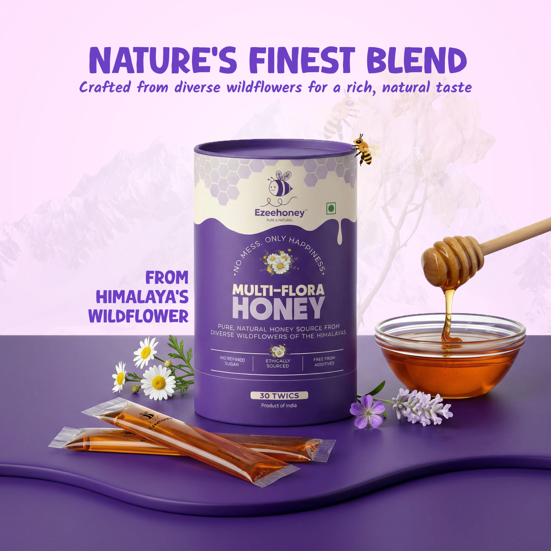 Discover the richness of nature with Ezeehoney™ Multifloral Honey, sourced from the diverse wildflowers of the Himalayas. This pure, natural honey offers a well-balanced flavor and wholesome goodness—packed in convenient, mess-free sticks for everyday use.