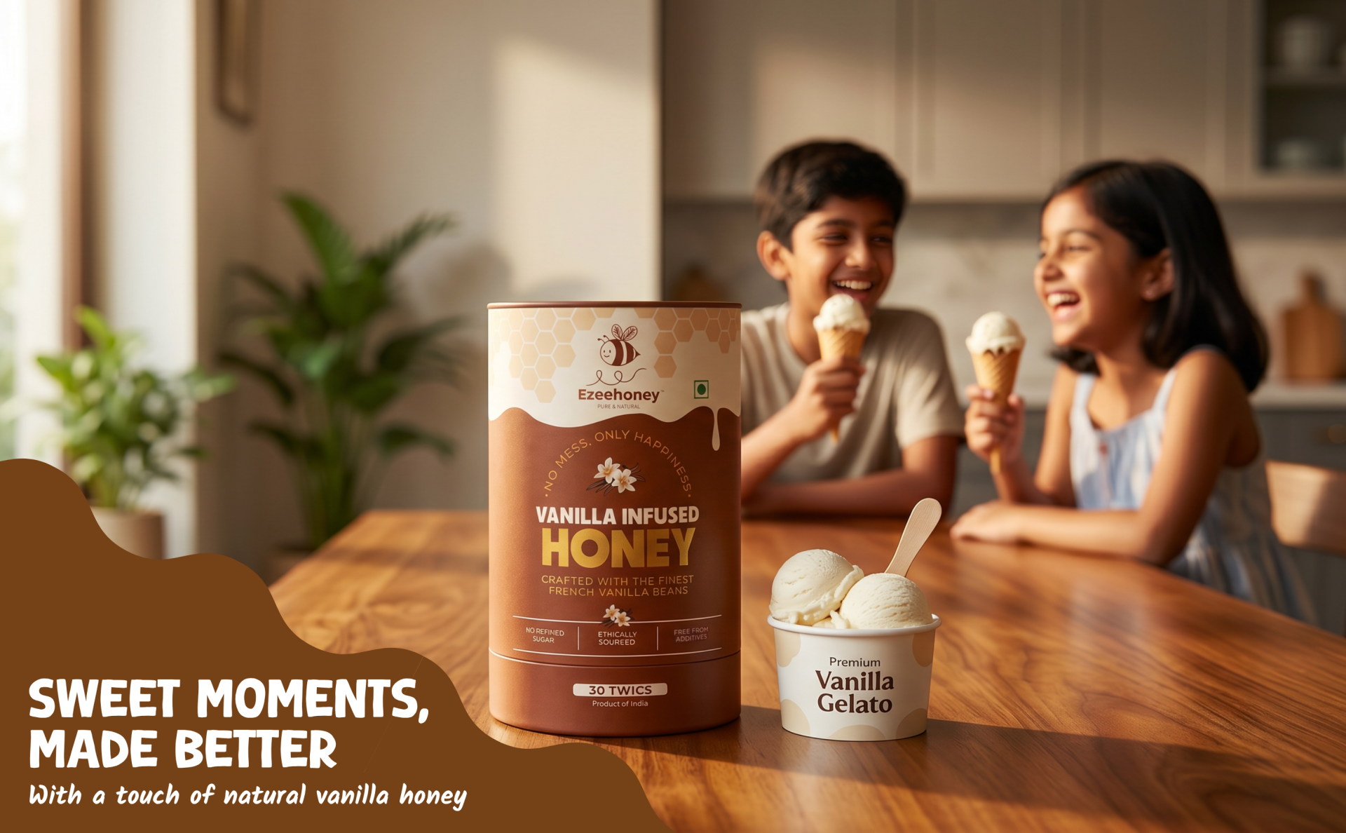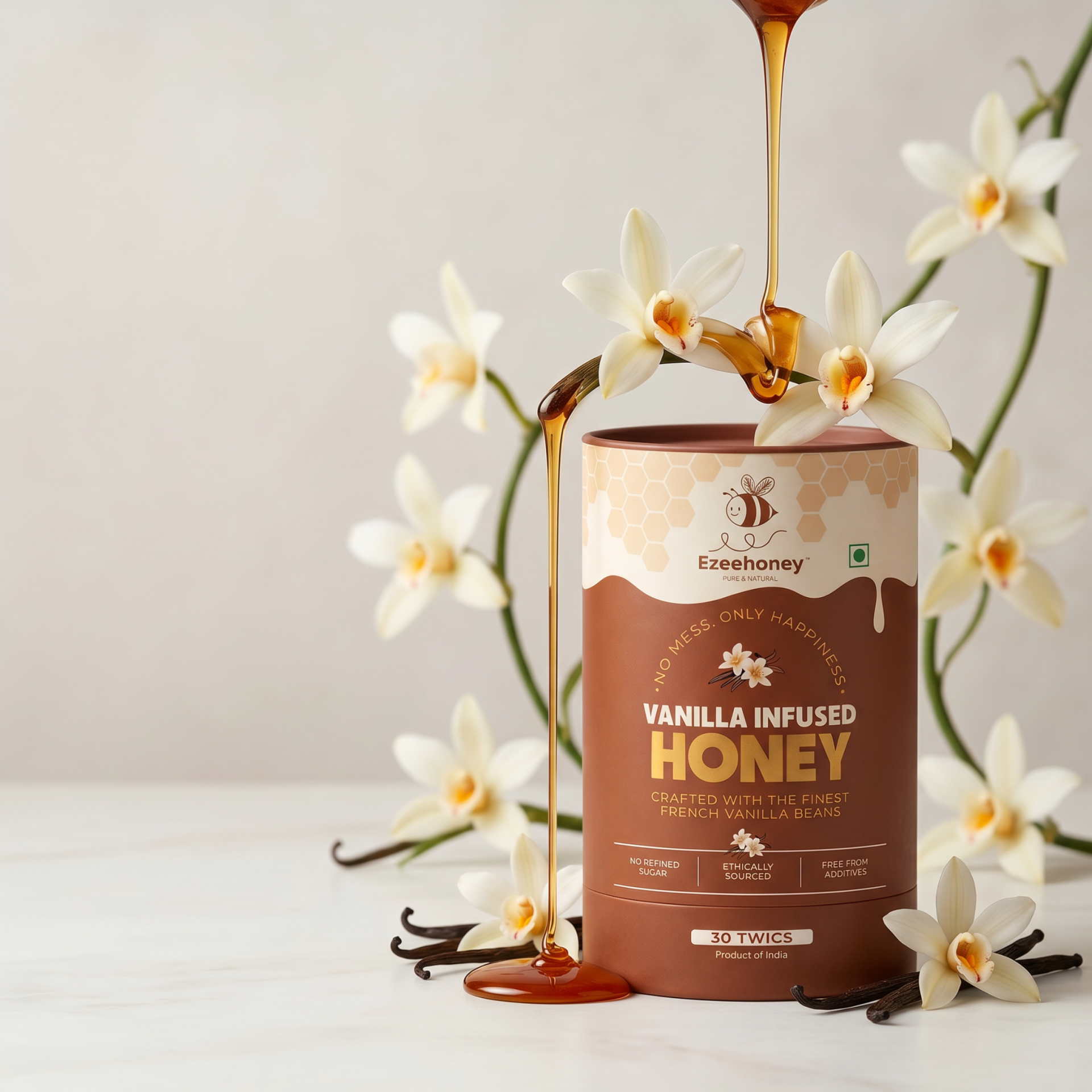 Experience a touch of elegance with Ezeehoney™ Vanilla Infused Honey, a luxurious blend of pure honey and the rich aroma of finest French vanilla beans. Smooth, naturally sweet, and conveniently packed—perfect for adding a hint of indulgence to your everyday routine.